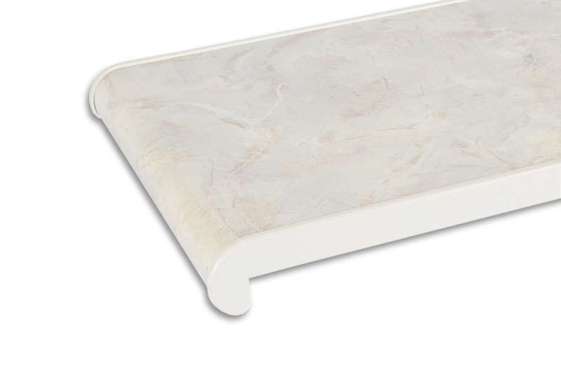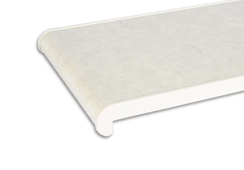 Подоконник Estera (Эстера) представлен в стильных современных дизайнах: классический Белый, Бристол, Мрамор, Палермо, Санлайт, София, Фиеста. Имеет идеально ровную матовую поверхность с круглым капиносом (передняя сторона подоконника).